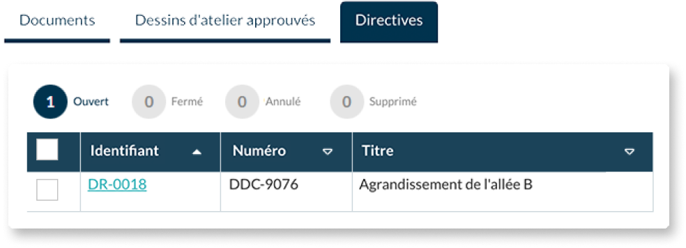 Une seule et même section pour soumettre, suivre et gérer les tâches d’un projet, ses Questions Réponses Techniques (QRT), et ses déficiences et observations.